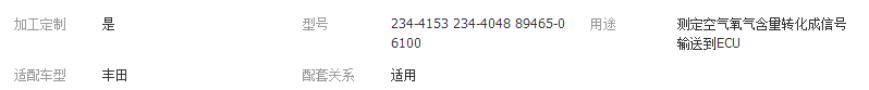 本网页所展示的有关【供应234-4153 234-4048 89465-06100 Lambda Sensor 氧传感器_传感器_深圳市天旺星汽车部件有限公司】的信息/图片/参数等由全球零部件网的会员【深圳市天旺星汽车部件有限公司】提供,由全球零部件网会员【深圳市天旺星汽车部件有限公司】自行对信息/图片/参数等的真实性、准确性和合法性负责,本平台(本网站)仅提供展示服务,请谨慎交易,因交易而产生的法律关系及法律纠纷由您自行协商解决,本平台(本网站)对此不承担任何责任。您在本网页可以浏览【供应234-4153 234-4048 89465-06100 Lambda Sensor 氧传感器_传感器_深圳市天旺星汽车部件有限公司】有关的信息/图片/价格等及提供【供应234-4153 234-4048 89465-06100 Lambda Sensor 氧传感器_传感器_深圳市天旺星汽车部件有限公司】的商家公司简介、开元kaiyuan(中国)等信息。