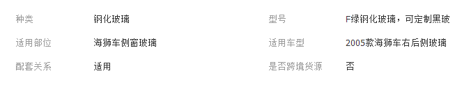 本网页所展示的有关【05款海狮汽车玻璃,新海狮右后窗(F绿钢化玻璃),可定制黑玻!_ HVAC汽车_泰州市开发区恒发汽车配件厂 】的信息/图片/参数等由全球零部件网的会员【泰州市开发区恒发汽车配件厂 】提供,由全球零部件网会员【泰州市开发区恒发汽车配件厂 】自行对信息/图片/参数等的真实性、准确性和合法性负责,本平台(本网站)仅提供展示服务,请谨慎交易,因交易而产生的法律关系及法律纠纷由您自行协商解决,本平台(本网站)对此不承担任何责任。您在本网页可以浏览【05款海狮汽车玻璃,新海狮右后窗(F绿钢化玻璃),可定制黑玻!_ HVAC汽车_泰州市开发区恒发汽车配件厂 】有关的信息/图片/价格等及提供【05款海狮汽车玻璃,新海狮右后窗(F绿钢化玻璃),可定制黑玻!_ HVAC汽车_泰州市开发区恒发汽车配件厂 】的商家公司简介、开元kaiyuan(中国)等信息。