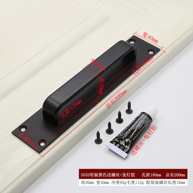 | 表面处理 | 哑光黑色 | 产品用途 | 门窗柜门 | 规格 | 5555明装哑光送螺丝,5555明装黑色送螺丝加字,5555明装哑光送螺丝+免钉胶,5555明装黑色送螺丝+免钉胶,5555哑光-送免钉胶,5555 |