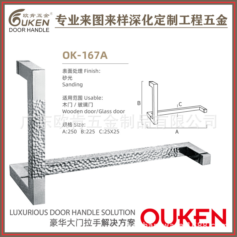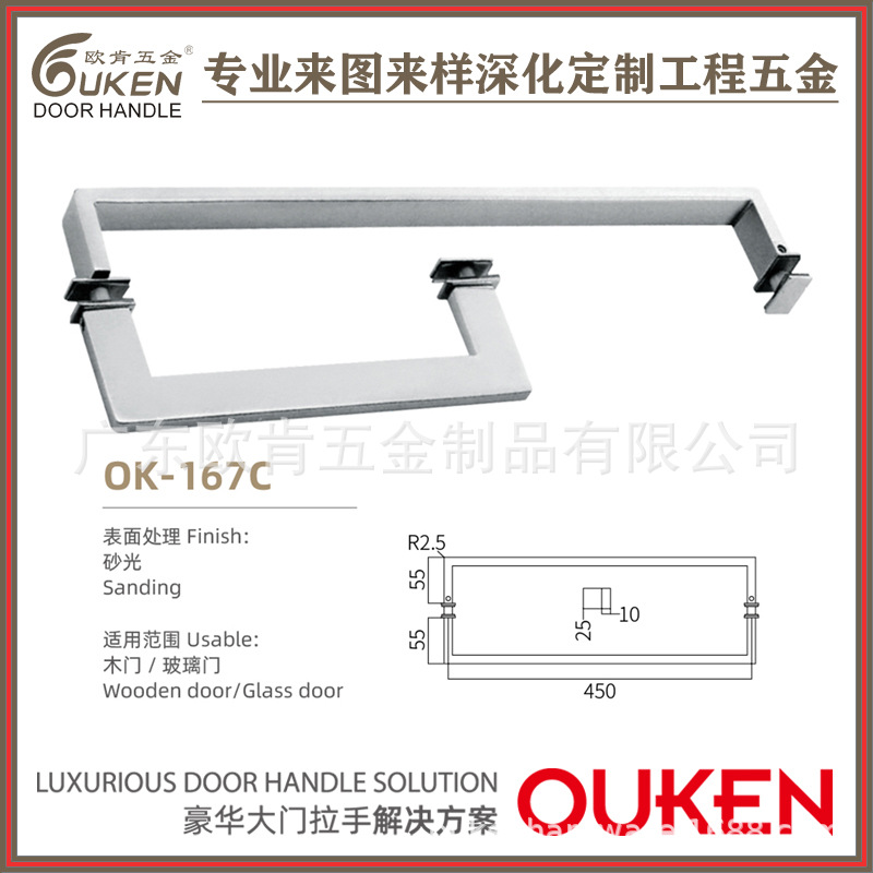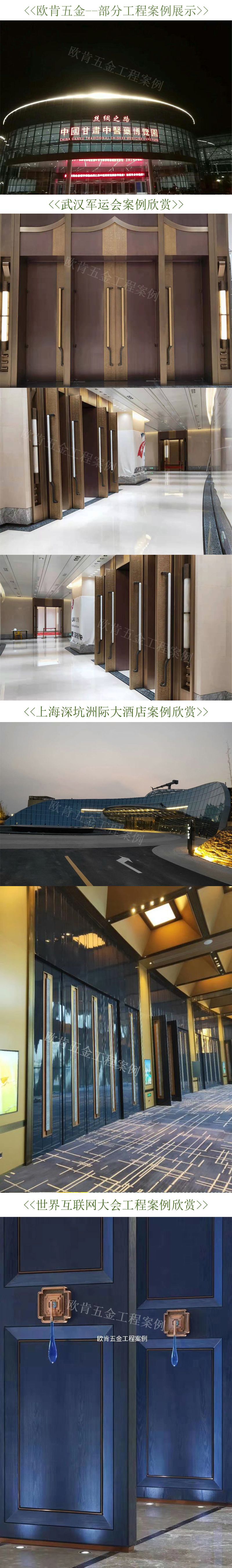 欧肯五金专业生产各种豪华大门拉手把手,淋浴房不锈钢拉手,铜、铝雕刻屏风,不锈钢屏风,浮雕壁画等五金工程配套产品,特别擅长生产各类工程订制五金产品,有专业的设计团队出CAD图,立体效果图等图纸,欢迎各位新老客户莅临本厂指导,共创美好明天。