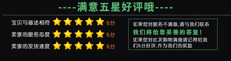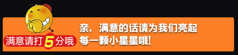 亲们在收到货后,如果对我们的产品质量和服务满意的情况下,我们希望得到您们的鼓励的好评,如有任何问题,希望您先联系我们,我们会给您满意的解决方案。