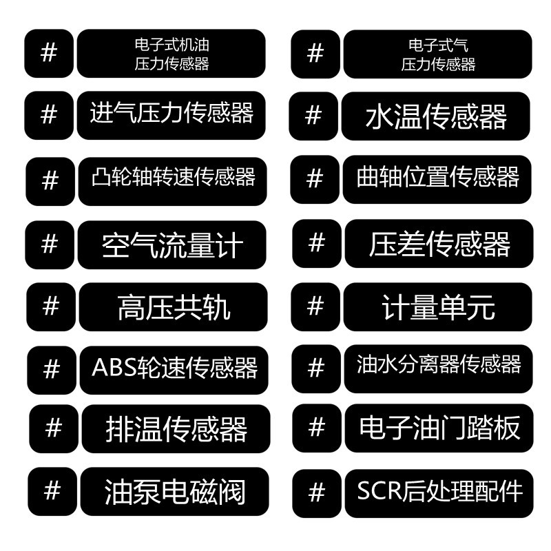 电喷配件 ABS轮速传感器 SCR后处理配件 电子油门踏板 进、回油电磁阀 开关系列