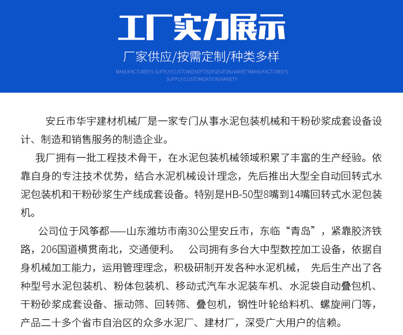 本网页所展示的有关【定做双嘴腻子粉包装机 全自动计量式包装机 水泥砂浆袋装灌装机_粉剂包装机_安丘市华宇建材机械厂】的信息/图片/参数等由全球零部件网的会员【安丘市华宇建材机械厂】提供,由全球零部件网会员【安丘市华宇建材机械厂】自行对信息/图片/参数等的真实性、准确性和合法性负责,本平台(本网站)仅提供展示服务,请谨慎交易,因交易而产生的法律关系及法律纠纷由您自行协商解决,本平台(本网站)对此不承担任何责任。您在本网页可以浏览【定做双嘴腻子粉包装机 全自动计量式包装机 水泥砂浆袋装灌装机_粉剂包装机_安丘市华宇建材机械厂】有关的信息/图片/价格等及提供【定做双嘴腻子粉包装机 全自动计量式包装机 水泥砂浆袋装灌装机_粉剂包装机_安丘市华宇建材机械厂】的商家公司简介、开元kaiyuan(中国)等信息。