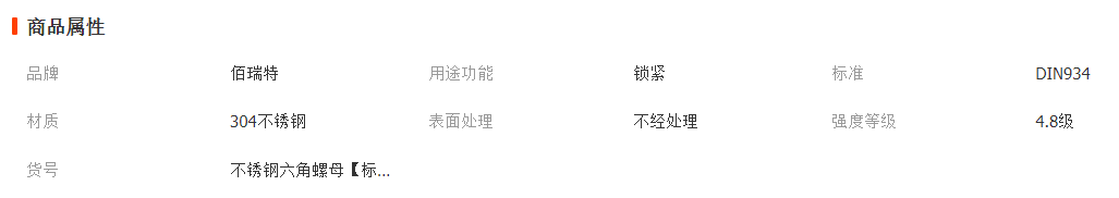 名称 | 六角螺母 | 表面处理 | 未经处理 |