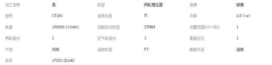 立即发布求购意向本网页所展示的有关【CT16V 1KD 17201-30110 涡轮增压器 17201-OL040_涡轮增压器及相关零件_凤城市诚康汽配经营部】的信息/图片/参数等由全球零部件网的会员【凤城市诚康汽配经营部】提供,由全球零部件网会员【凤城市诚康汽配经营部】自行对信息/图片/参数等的真实性、准确性和合法性负责,本平台(本网站)仅提供展示服务,请谨慎交易,因交易而产生的法律关系及法律纠纷由您自行协商解决,本平台(本网站)对此不承担任何责任。您在本网页可以浏览【CT16V 1KD 17201-30110 涡轮增压器 17201-OL040_涡轮增压器及相关零件_凤城市诚康汽配经营部】有关的信息/图片/价格等及提供【CT16V 1KD 17201-30110 涡轮增压器 17201-OL040_涡轮增压器及相关零件_凤城市诚康汽配经营部】的商家公司简介、开元kaiyuan(中国)等信息。