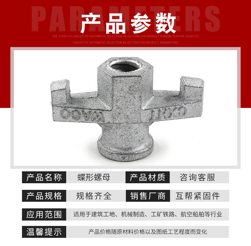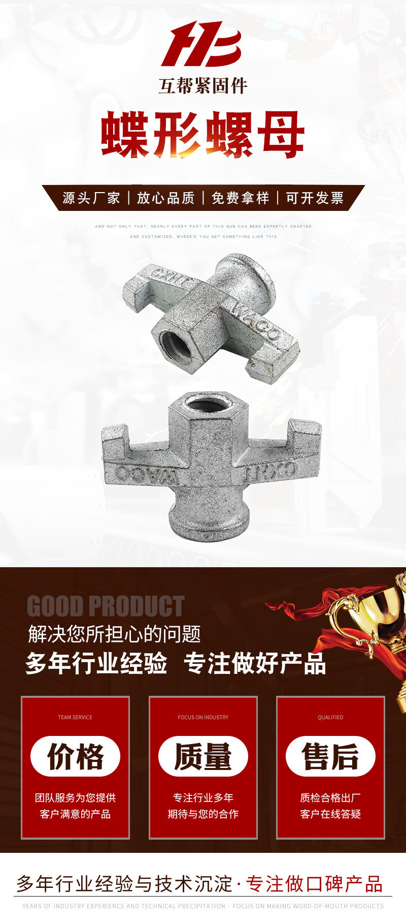 本网页所展示的有关【山型母 建筑蝶形螺母 铸造梯形扣螺母穿墙丝配套山形螺母蝴蝶母_螺母_邯郸市互帮紧固件制造有限公司】的信息/图片/参数等由全球零部件网的会员【邯郸市互帮紧固件制造有限公司】提供,由全球零部件网会员【邯郸市互帮紧固件制造有限公司】自行对信息/图片/参数等的真实性、准确性和合法性负责,本平台(本网站)仅提供展示服务,请谨慎交易,因交易而产生的法律关系及法律纠纷由您自行协商解决,本平台(本网站)对此不承担任何责任。您在本网页可以浏览【山型母 建筑蝶形螺母 铸造梯形扣螺母穿墙丝配套山形螺母蝴蝶母_螺母_邯郸市互帮紧固件制造有限公司】有关的信息/图片/价格等及提供【山型母 建筑蝶形螺母 铸造梯形扣螺母穿墙丝配套山形螺母蝴蝶母_螺母_邯郸市互帮紧固件制造有限公司】的商家公司简介、开元kaiyuan(中国)等信息。