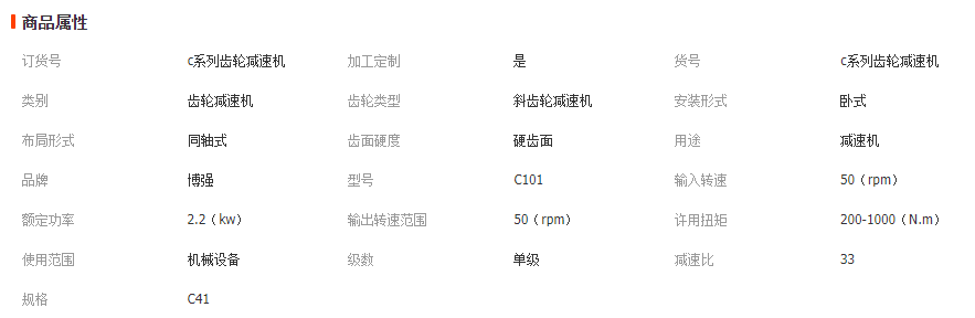 2、一级C平行轴输出、体积小、减速比小、输出转速快、噪音低、平均效率98%。