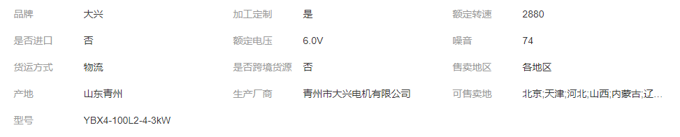 本网页所展示的有关【YBX4-100L2-4-3kW防爆电机 降低运行成本 效率较高_直流电机_青州市大兴电机有限公司】的信息/图片/参数等由全球零部件网的会员【青州市大兴电机有限公司】提供,由全球零部件网会员【青州市大兴电机有限公司】自行对信息/图片/参数等的真实性、准确性和合法性负责,本平台(本网站)仅提供展示服务,请谨慎交易,因交易而产生的法律关系及法律纠纷由您自行协商解决,本平台(本网站)对此不承担任何责任。您在本网页可以浏览【YBX4-100L2-4-3kW防爆电机 降低运行成本 效率较高_直流电机_青州市大兴电机有限公司】有关的信息/图片/价格等及提供【YBX4-100L2-4-3kW防爆电机 降低运行成本 效率较高_直流电机_青州市大兴电机有限公司】的商家公司简介、开元kaiyuan(中国)等信息。