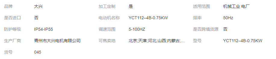 本网页所展示的有关【YCT112–4B-0.75KW调速电机 可靠性较高 维修成本低_直流电机_青州市大兴电机有限公司】的信息/图片/参数等由全球零部件网的会员【青州市大兴电机有限公司】提供,由全球零部件网会员【青州市大兴电机有限公司】自行对信息/图片/参数等的真实性、准确性和合法性负责,本平台(本网站)仅提供展示服务,请谨慎交易,因交易而产生的法律关系及法律纠纷由您自行协商解决,本平台(本网站)对此不承担任何责任。您在本网页可以浏览【YCT112–4B-0.75KW调速电机 可靠性较高 维修成本低_直流电机_青州市大兴电机有限公司】有关的信息/图片/价格等及提供【YCT112–4B-0.75KW调速电机 可靠性较高 维修成本低_直流电机_青州市大兴电机有限公司】的商家公司简介、开元kaiyuan(中国)等信息。