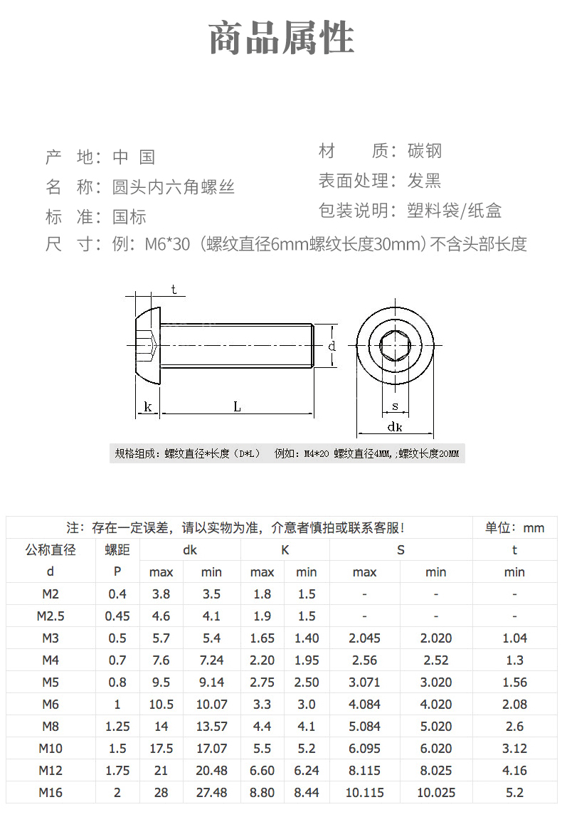 本网页所展示的有关【10.9级圆头内六角螺丝盘头内六角螺栓高强度黑色圆杯M2M3 M4M5-M12_螺栓_深圳市伟粤紧固件有限公司】的信息/图片/参数等由全球零部件网的会员【深圳市伟粤紧固件有限公司】提供,由全球零部件网会员【深圳市伟粤紧固件有限公司】自行对信息/图片/参数等的真实性、准确性和合法性负责,本平台(本网站)仅提供展示服务,请谨慎交易,因交易而产生的法律关系及法律纠纷由您自行协商解决,本平台(本网站)对此不承担任何责任。您在本网页可以浏览【10.9级圆头内六角螺丝盘头内六角螺栓高强度黑色圆杯M2M3 M4M5-M12_螺栓_深圳市伟粤紧固件有限公司】有关的信息/图片/价格等及提供【10.9级圆头内六角螺丝盘头内六角螺栓高强度黑色圆杯M2M3 M4M5-M12_螺栓_深圳市伟粤紧固件有限公司】的商家公司简介、开元kaiyuan(中国)等信息。
