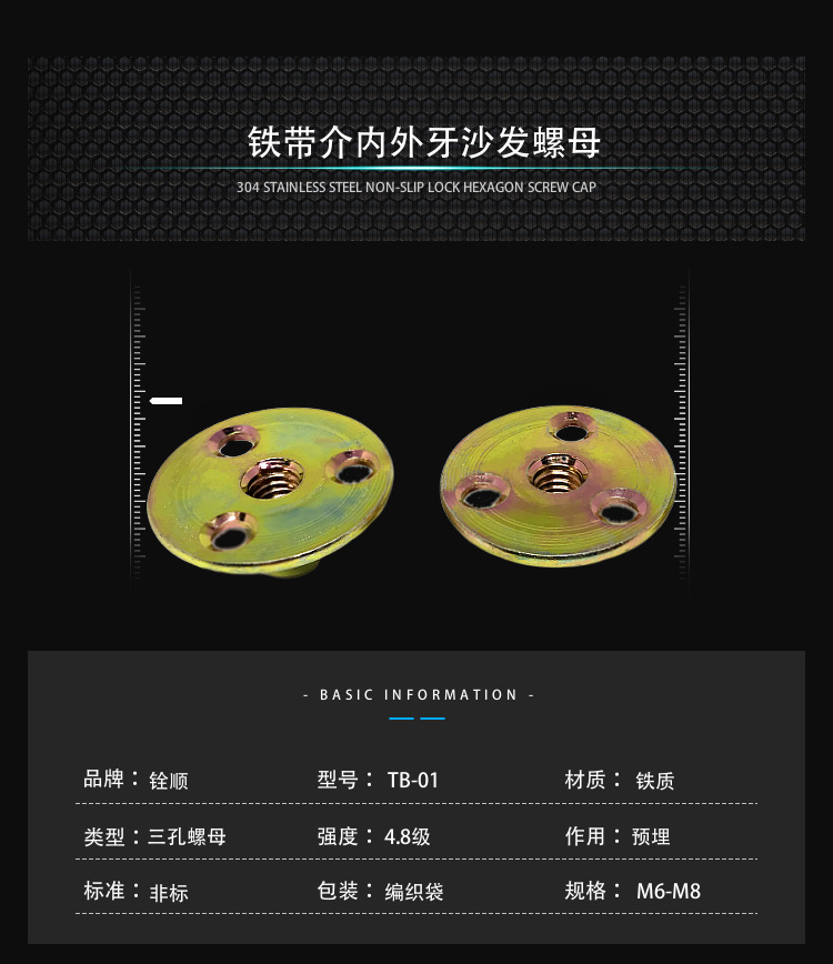 本网页所展示的有关【铁板螺母 工厂直供45#钢镀锌公制m6m8m10家具配件三孔预埋螺母_螺母_东莞市大岭山铨顺五金制品有限公司】的信息/图片/参数等由全球零部件网的会员【东莞市大岭山铨顺五金制品有限公司】提供,由全球零部件网会员【东莞市大岭山铨顺五金制品有限公司】自行对信息/图片/参数等的真实性、准确性和合法性负责,本平台(本网站)仅提供展示服务,请谨慎交易,因交易而产生的法律关系及法律纠纷由您自行协商解决,本平台(本网站)对此不承担任何责任。您在本网页可以浏览【铁板螺母 工厂直供45#钢镀锌公制m6m8m10家具配件三孔预埋螺母_螺母_东莞市大岭山铨顺五金制品有限公司】有关的信息/图片/价格等及提供【铁板螺母 工厂直供45#钢镀锌公制m6m8m10家具配件三孔预埋螺母_螺母_东莞市大岭山铨顺五金制品有限公司】的商家公司简介、开元kaiyuan(中国)等信息。