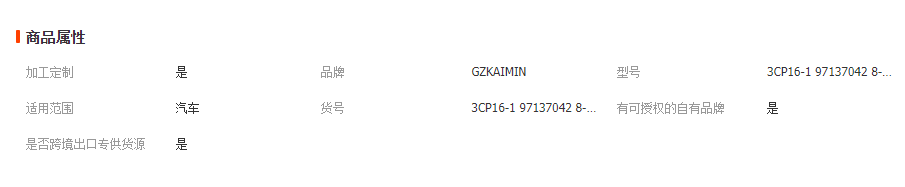 OEM:3CP16-1 97137042 8-97137042-1 8971370421