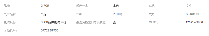 本网页所展示的有关【挖掘机发动机冷却水泵适用久保田KUBOTA DF752 DF750 12691-73030_发动机系统_瑞安市吉发汽车配件有限公司】的信息/图片/参数等由全球零部件网的会员【瑞安市吉发汽车配件有限公司】提供,由全球零部件网会员【瑞安市吉发汽车配件有限公司】自行对信息/图片/参数等的真实性、准确性和合法性负责,本平台(本网站)仅提供展示服务,请谨慎交易,因交易而产生的法律关系及法律纠纷由您自行协商解决,本平台(本网站)对此不承担任何责任。您在本网页可以浏览【挖掘机发动机冷却水泵适用久保田KUBOTA DF752 DF750 12691-73030_发动机系统_瑞安市吉发汽车配件有限公司】有关的信息/图片/价格等及提供【挖掘机发动机冷却水泵适用久保田KUBOTA DF752 DF750 12691-73030_发动机系统_瑞安市吉发汽车配件有限公司】的商家公司简介、开元kaiyuan(中国)等信息。