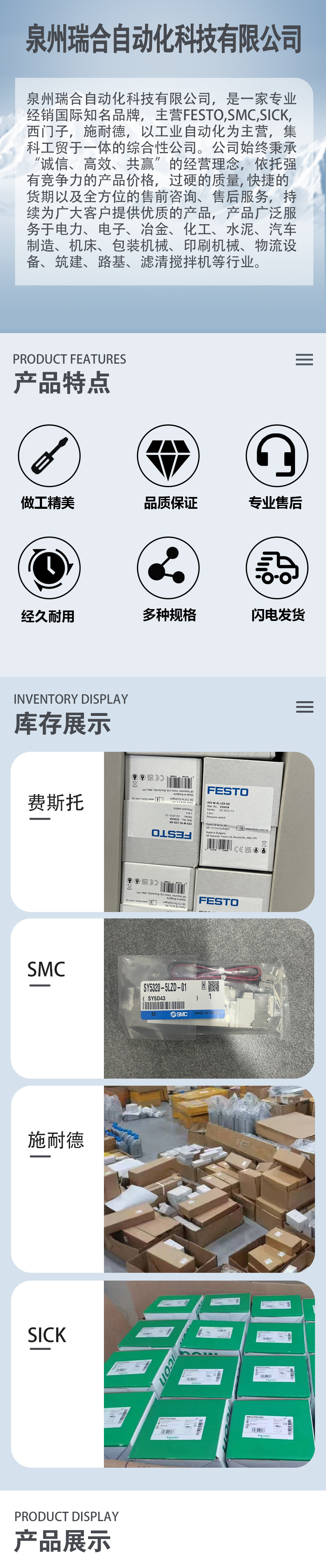 本网页所展示的有关【FESTO费斯托LR-1/2-D-MIDI-MPA减压阀可订货库存现货气缸气管接头_五金配件_泉州瑞合自动化科技有限公司】的信息/图片/参数等由全球零部件网的会员【泉州瑞合自动化科技有限公司】提供,由全球零部件网会员【泉州瑞合自动化科技有限公司】自行对信息/图片/参数等的真实性、准确性和合法性负责,本平台(本网站)仅提供展示服务,请谨慎交易,因交易而产生的法律关系及法律纠纷由您自行协商解决,本平台(本网站)对此不承担任何责任。您在本网页可以浏览【FESTO费斯托LR-1/2-D-MIDI-MPA减压阀可订货库存现货气缸气管接头_五金配件_泉州瑞合自动化科技有限公司】有关的信息/图片/价格等及提供【FESTO费斯托LR-1/2-D-MIDI-MPA减压阀可订货库存现货气缸气管接头_五金配件_泉州瑞合自动化科技有限公司】的商家公司简介、开元kaiyuan(中国)等信息。