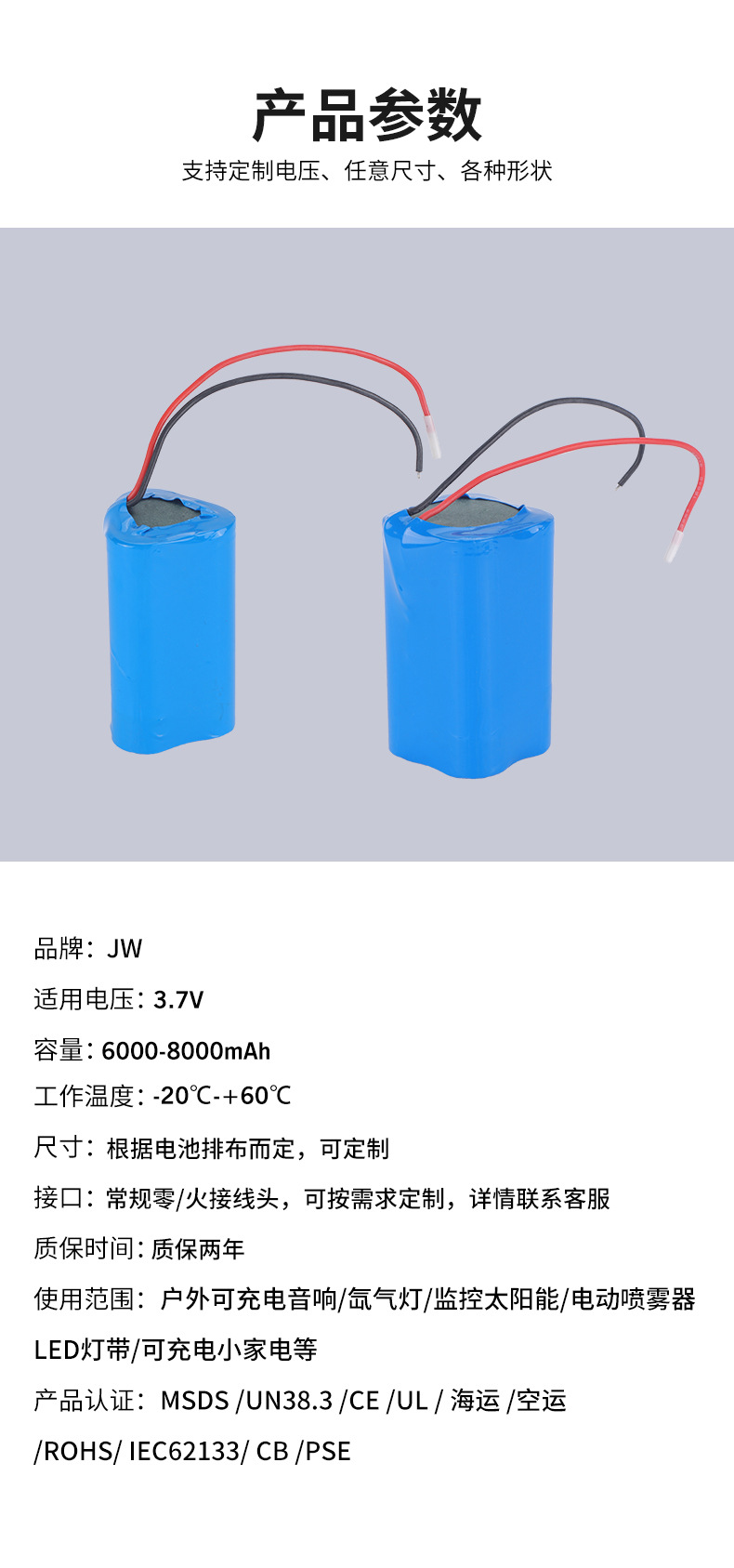 本网页所展示的有关【厂家直供锂电池磷酸铁锂太阳能电池3.7V6000MAH电池12VLED灯带_电池/蓄电池_中山江沃新能源科技有限公司】的信息/图片/参数等由全球零部件网的会员【中山江沃新能源科技有限公司】提供,由全球零部件网会员【中山江沃新能源科技有限公司】自行对信息/图片/参数等的真实性、准确性和合法性负责,本平台(本网站)仅提供展示服务,请谨慎交易,因交易而产生的法律关系及法律纠纷由您自行协商解决,本平台(本网站)对此不承担任何责任。您在本网页可以浏览【厂家直供锂电池磷酸铁锂太阳能电池3.7V6000MAH电池12VLED灯带_电池/蓄电池_中山江沃新能源科技有限公司】有关的信息/图片/价格等及提供【厂家直供锂电池磷酸铁锂太阳能电池3.7V6000MAH电池12VLED灯带_电池/蓄电池_中山江沃新能源科技有限公司】的商家公司简介、开元kaiyuan(中国)等信息。