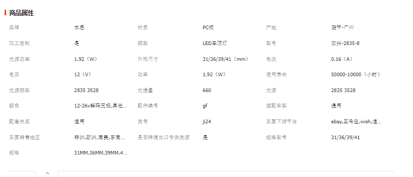 用途: 阅读灯 牌照灯 车门灯 车顶灯 尾箱灯